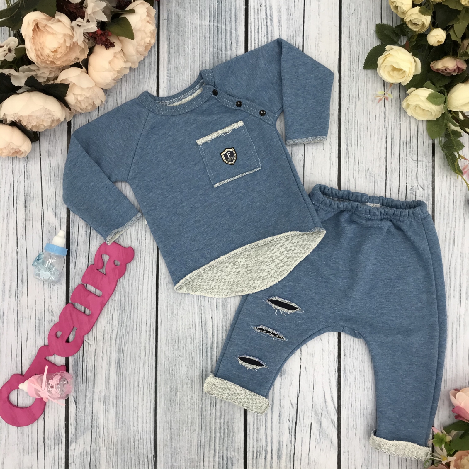 Купить оптом 239. Костюм ясельный, хлопок 65%, 35% ПЭ, 3-х нитка футер без начеса, джинса 74,80,86 в Котласе