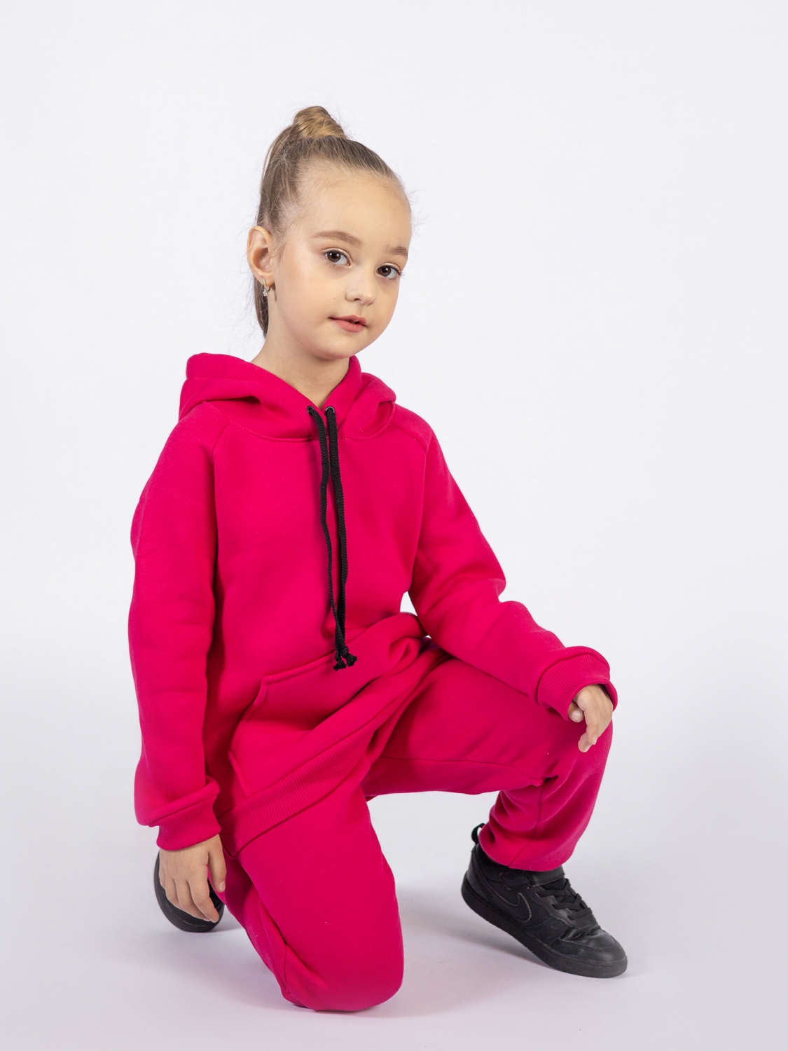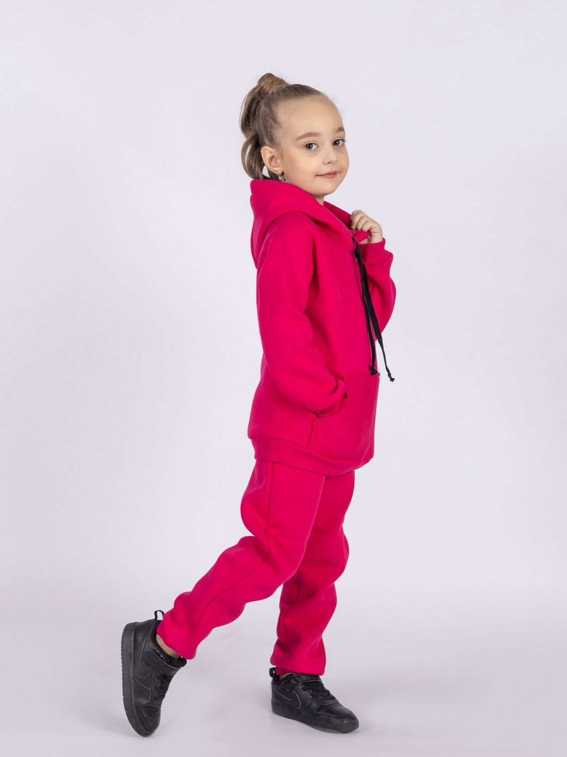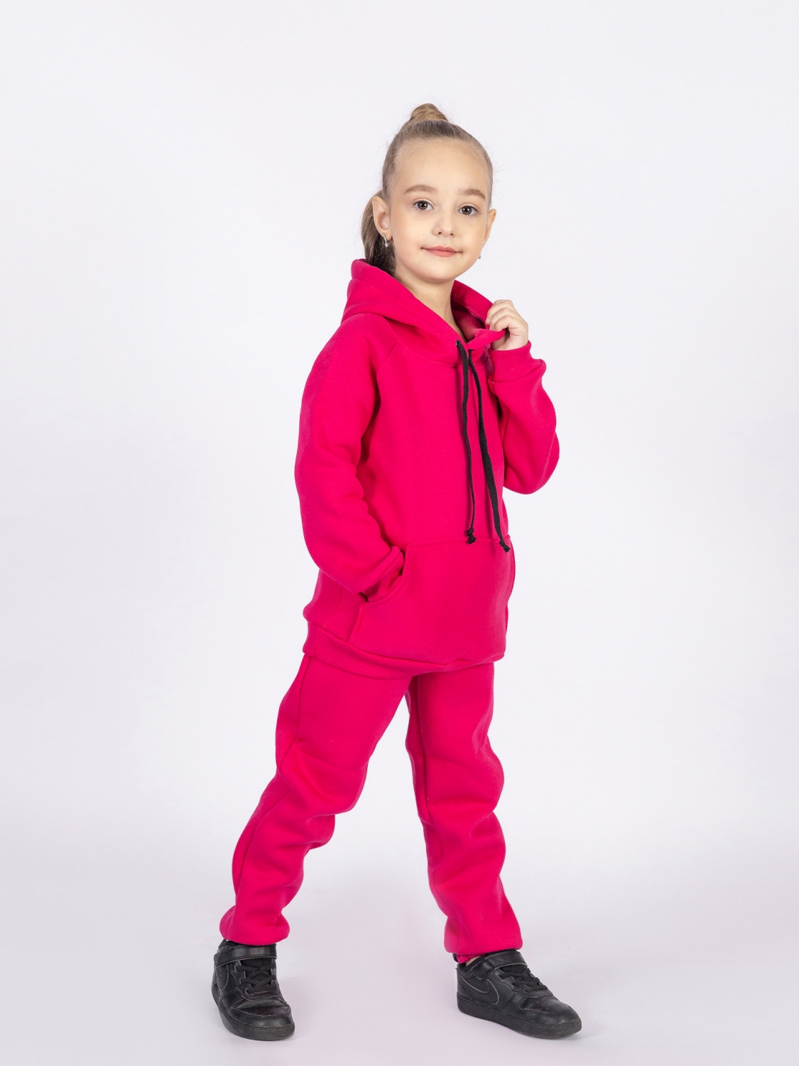 296-Ф. Свитшот с капюшоном + Штаны, хлопок 65%, 35% ПЭ, 3-х нитка (начес) фуксия 80,86,92