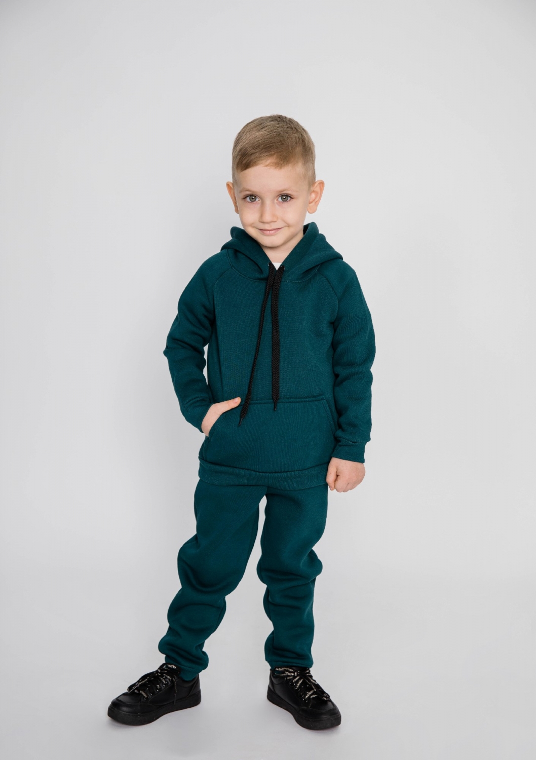 Купить оптом 296-И. Свитшот с капюшоном + Штаны, хлопок 65%, 35% ПЭ, 3-х нитка (начес) изумрудный 98,104,110,116 в Котласе