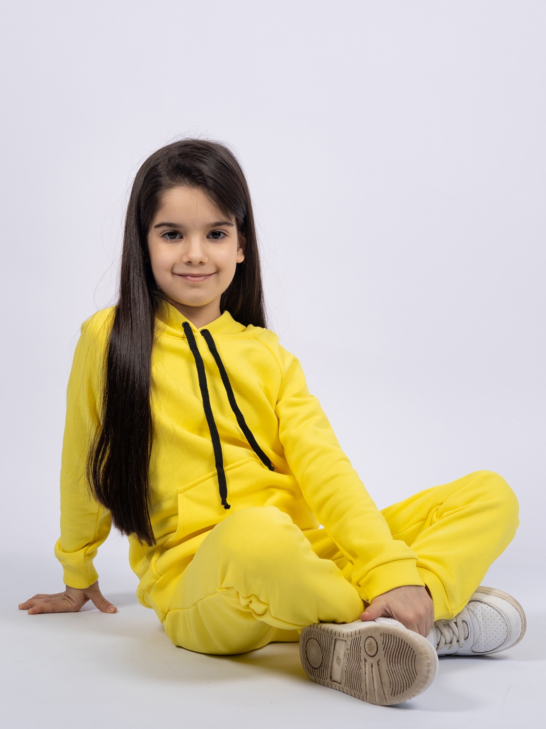 311-Ж. Свитшот с капюшоном + Штаны, хлопок 65%, 35% ПЭ, 3-х нитка ( без начеса) желтый 98,104,110,116